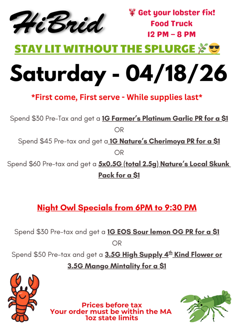 You’ve arrived at Hibrid Co in Pittsfield, MA – the #1 cannabis store serving Union Counties and the surrounding communities. We carry all cannabis products and marijuana strains. Our cannabis customers love coming to us for the best selection of Marijuana Flower, Pre-Rolls, Vapes, Edibles, Concentrates, and other great products like Topicals and Tinctures. Browse our entire live cannabis menu online and place an order today! Check out our dispensary customer reviews and see how we’re able to deliver a great cannabis dispensary experience. Read our dozens of 5-star customer reviews.